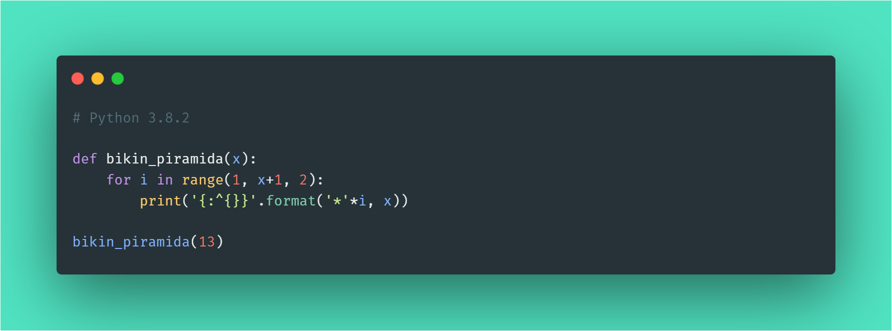 Jika kalian sudah selesai membuat kodingan dan mengatur tema nya kalian bisa langsung export ke format PNG dan SVG (tinggal kalian pilih saja sesuai keperluan kalian). Berikut saya kasih contoh hasil kodingan yang sudah saya buat di website https://carbon.now.sh: